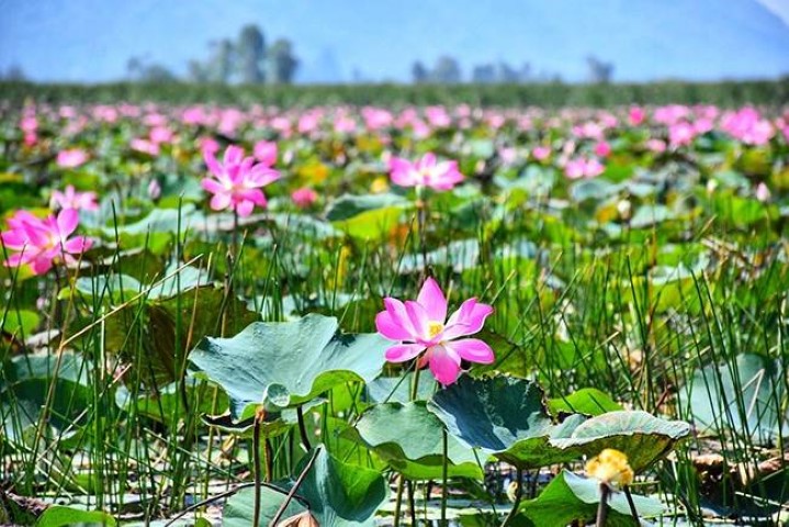 เป็นพื้นที่ทุ่งน้ำจืดขนาดใหญ่ ด้านหลังบึงบัวคือแนวทิวเขาสวยเรียงตัวกันอยู่โดยรอบเหมือนป้อมปราการ ในบึงมีบัวสีชมพูขึ้นปกคลุมอยู่เต็มผืนน้ำ เป็นภาพธรรมชาติที่สวยงามอย่างยิ่ง นอกจากนี้ยังมีจุดถ่ายรูปที่ถือเป็นไฮไลต์ ของที่นี่ คือ ทางเดินไม้ทอดยาวต่อเนื่องหลายร้อยเมตรและศาลาไม้สำหรับนั่ง ชื่นชมความงดงามธรรมชาติ ค่าเข้าชม 40 บาท ต่อคน หากต้องการสัมผัสกับธรรมชาติแบบใกล้ชิด มีบริการเรือเช่าเหมาลำราคาประมาณ 500 บาท สำหรับ 6 คน เหมาะสำหรับนักท่องเที่ยวกลุ่มใหญ่หรือครอบครัว